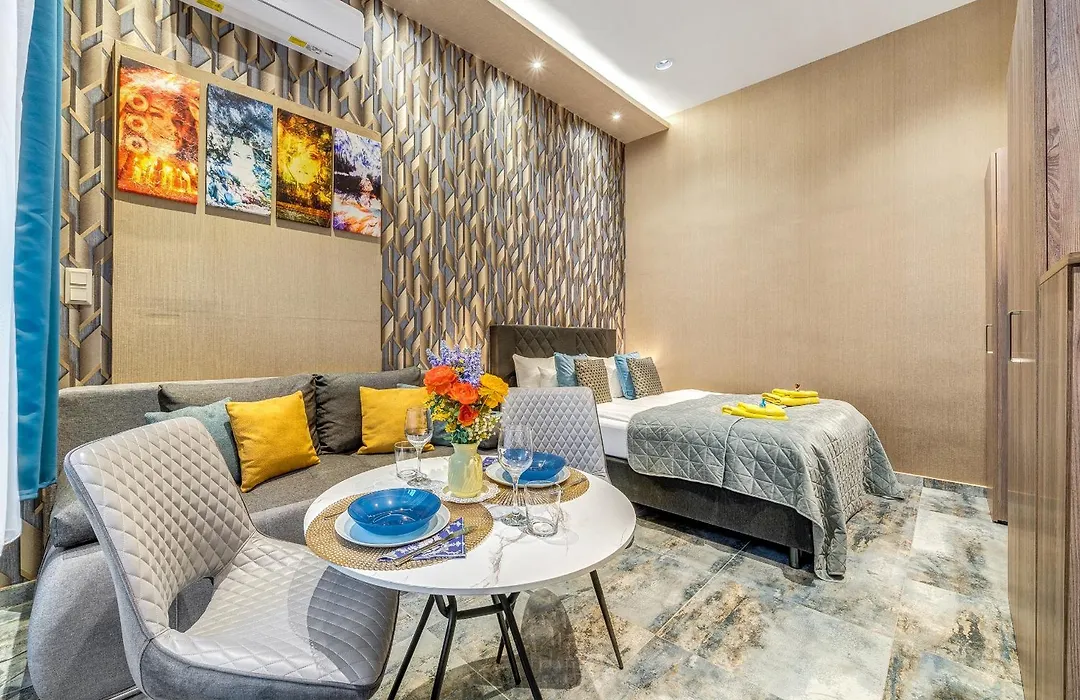 The apartment lies in the 07. Erzsebetvaros district, only 1.7 km from the Budapest Eye observation wheel. The 30 m² apartment is approximately a 10-minute ride from the twin-towered Szechenyi Chain Bridge in Budapest.